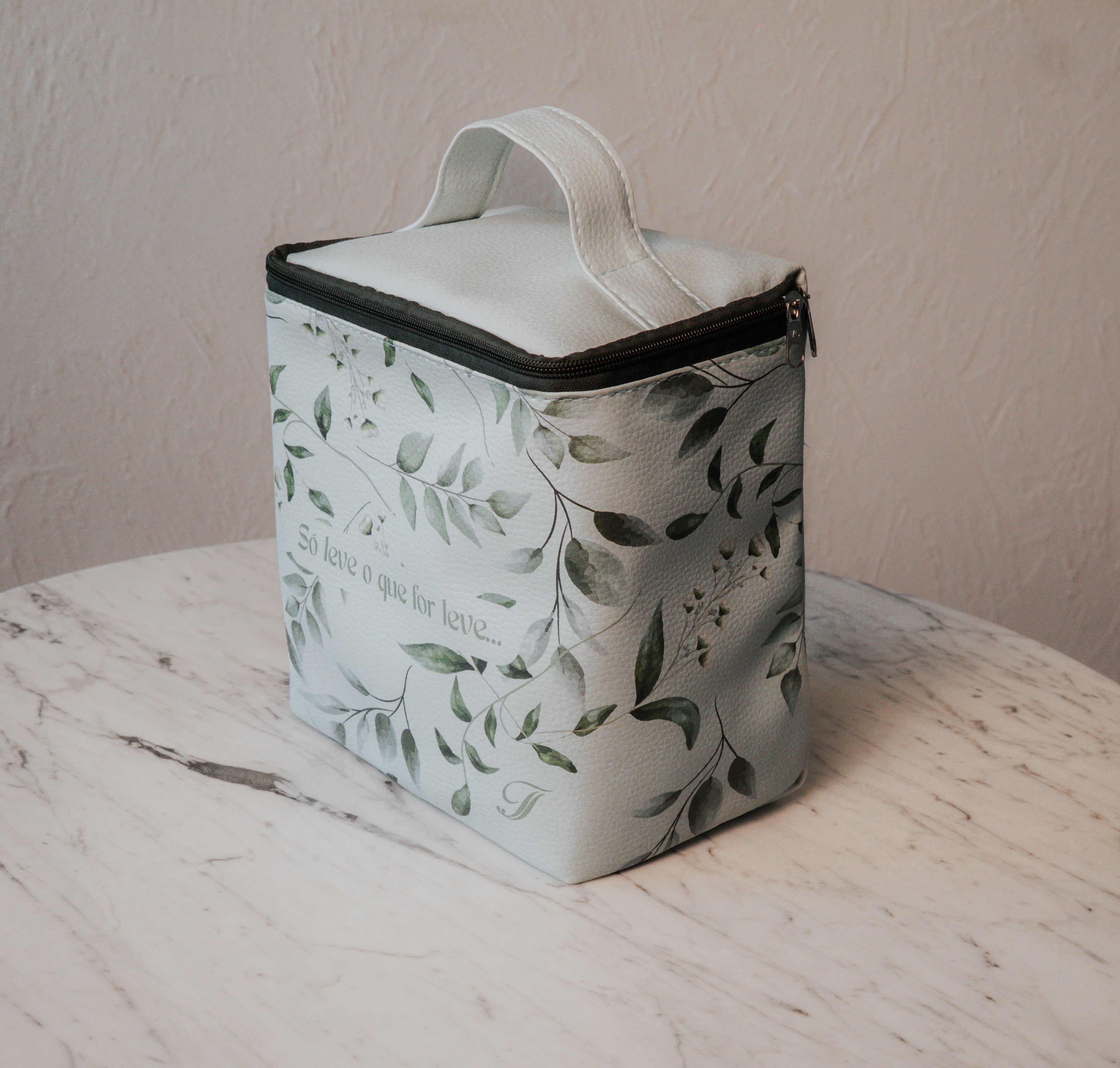 Esta lancheira combina praticidade e estilo com sua estampa floral elegante. Ideal para quem busca uma opção funcional sem abrir mão do charme, ela mantém seus alimentos organizados e frescos com facilidade. Perfeita para o dia a dia, une design sofisticado e conforto em um só acessório.